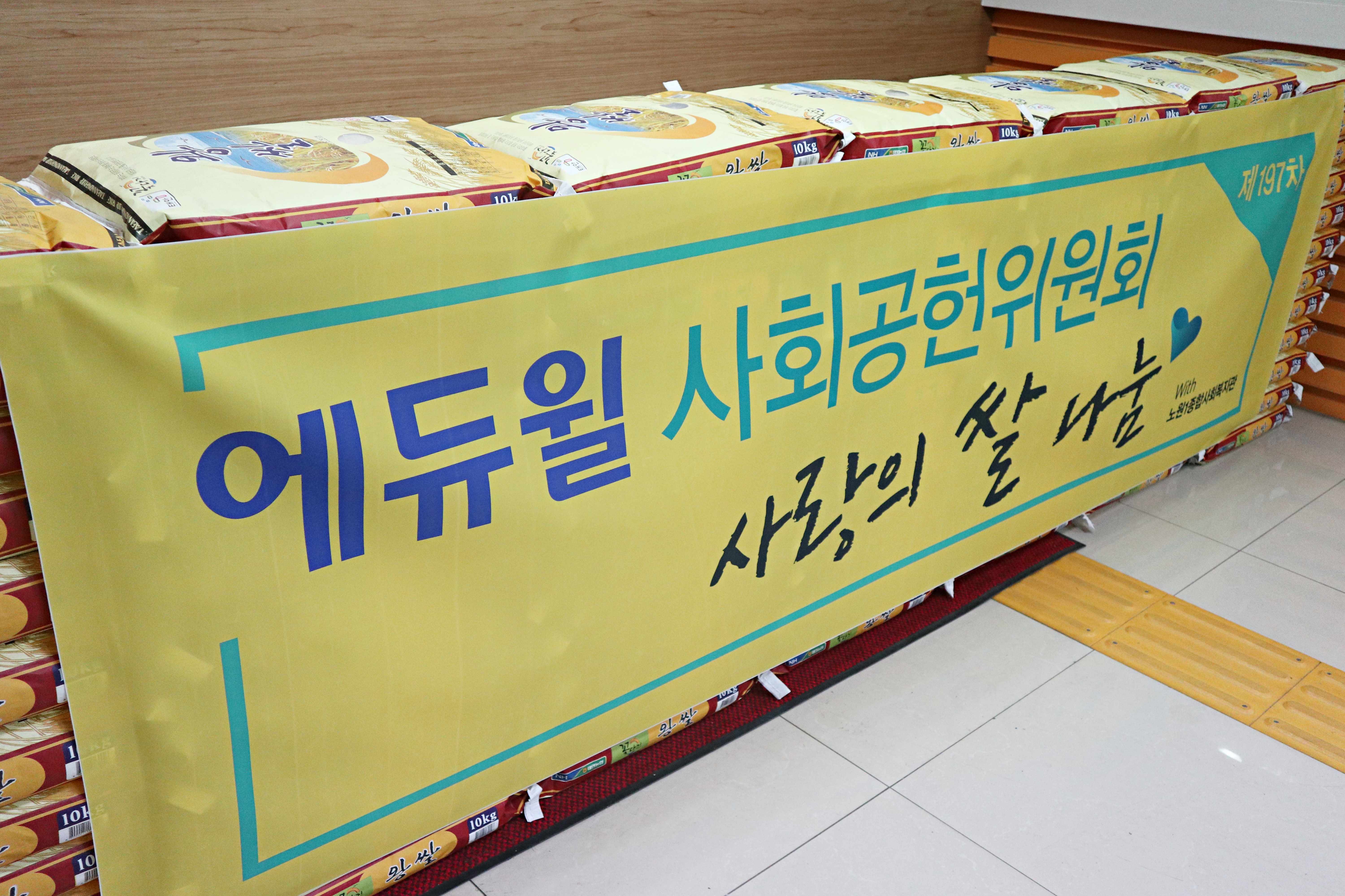 에듀윌 사회공헌위원회는 오늘 제197차 사랑의 쌀 나눔 기증식을 진행했습니다.