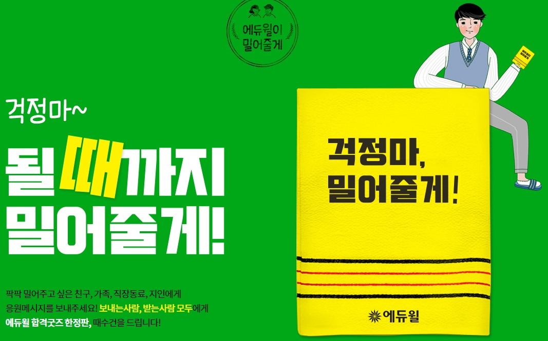에듀윌이 수험생을 밀어주겠다는 메시지를 동시에 전달할 수 있는,
