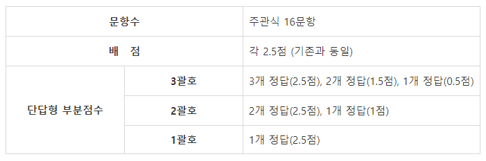 2. 2차 시험 주관식 단답형 부분점수제도 도입 및 주관식 정답 인정 기준 제시