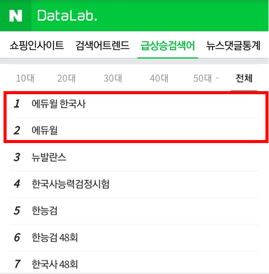 ‘에듀윌’, ‘에듀윌 한국사’가 나란히