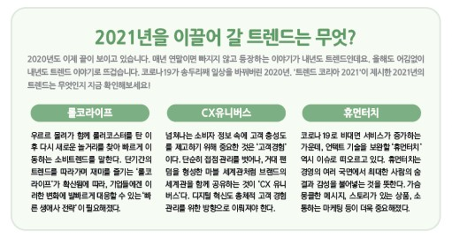 올해도 어김없이 내년도 트렌드 이야기로 뜨겁습니다.