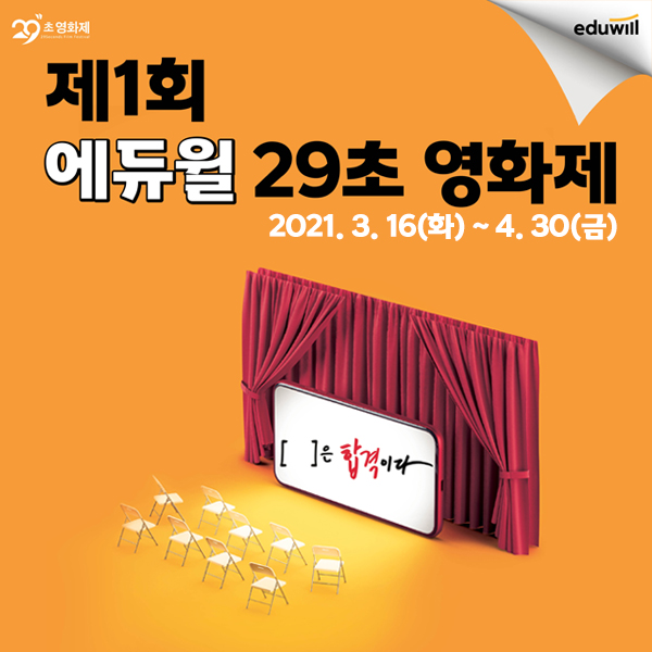 에듀윌이 세계 최초 디지털 컨버전스 영화제인 ‘29초 영화제’를 개최했습니다. 29초 영화는 제목, 크레딧을 제외한 29초 길이의 모든 영상을 의미하는데요! 이번에 에듀윌이 던진 화두는 ‘[ ]는 합격이다’ 입니다.