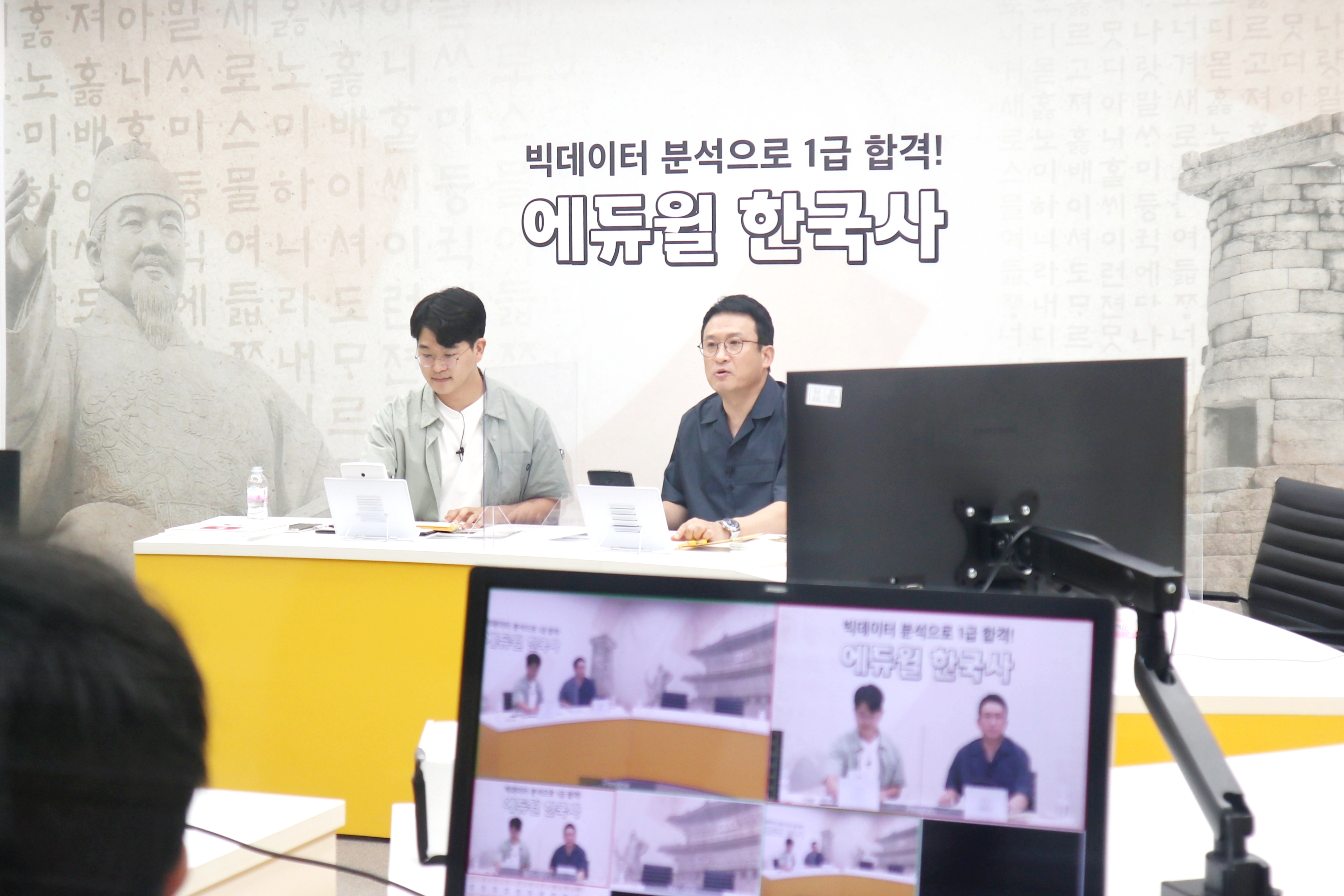 이제는 ‘찰떡 듀오’가 된 에듀윌 홍보대사 개그맨 서경석 씨와 에듀윌 출판마케팅팀 김동석 매니저가 MC를 맡은 에듀윌 한국사 생방송은 또 한 번 100%의 정확도를 달성했습니다. 이로써 고급/심화 가답안 기준으로 총 19회의 정확도 100% 기록을 세웠습니다!