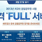 2013년도 제2회 경찰공무원 필기시험이 8월 31일 토요일이 실시됩니다. 경찰공무원 시험 전·후에 꼭 알아두어야 할 합격 전략, 에듀윌 합격 풀서비스에서 알려드리겠습니다^-^ ▶ 최종 핵심 요약집 과목별 최고 전문가들이 시험 직전 꼭 봐야 할 핵심만을 선별한 요약집입니다. >> 경찰공무원 핵심 요약집 다운받기 클릭! 경찰공무원 필수 기출문제 바로가기 클릭! 경찰공무원 가답안 확인하기 클릭! 경찰공무원 해설특강 바로가기 클릭! 합격후기 이벤트 바로가기 클릭!