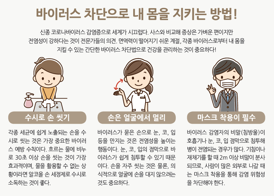 각종 바이러스로부터 내 몸을 지킬 수 있는 간단한 바이러스 차단법으로